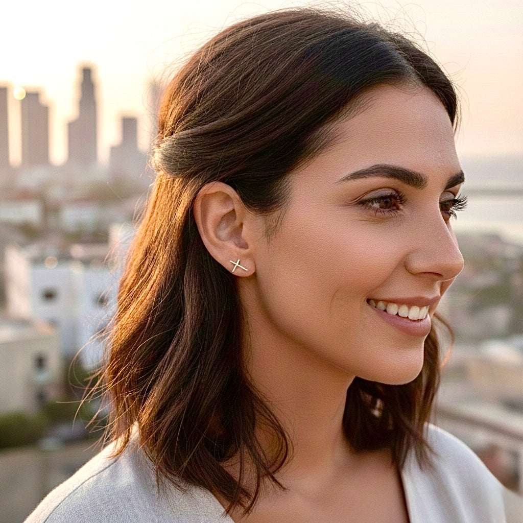 Solid Sterling Silver (S925) Cross that wraps your ear! You will wear them everyday! Silver is hypoallergenic great for people with allergies. These stud Earrings are perfect for Engagements and Weddings or wearing everyday!
