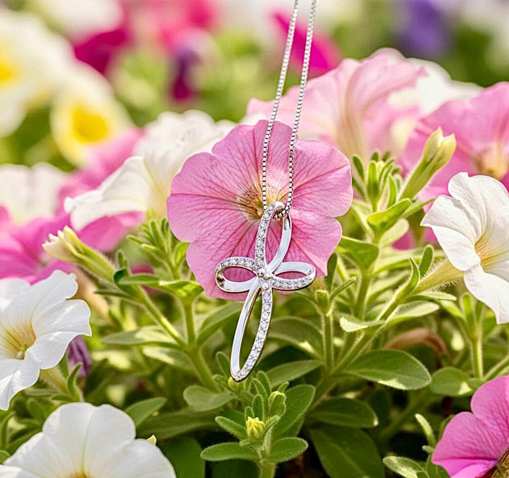 This Beautiful Solid Sterling Silver S925 Classic Hollow Swirl Infinite Life Cross Necklace Pendant Inset Zircons. Silver finish with dazzling Crystals and Box link chain with positive locking lobster clasp.