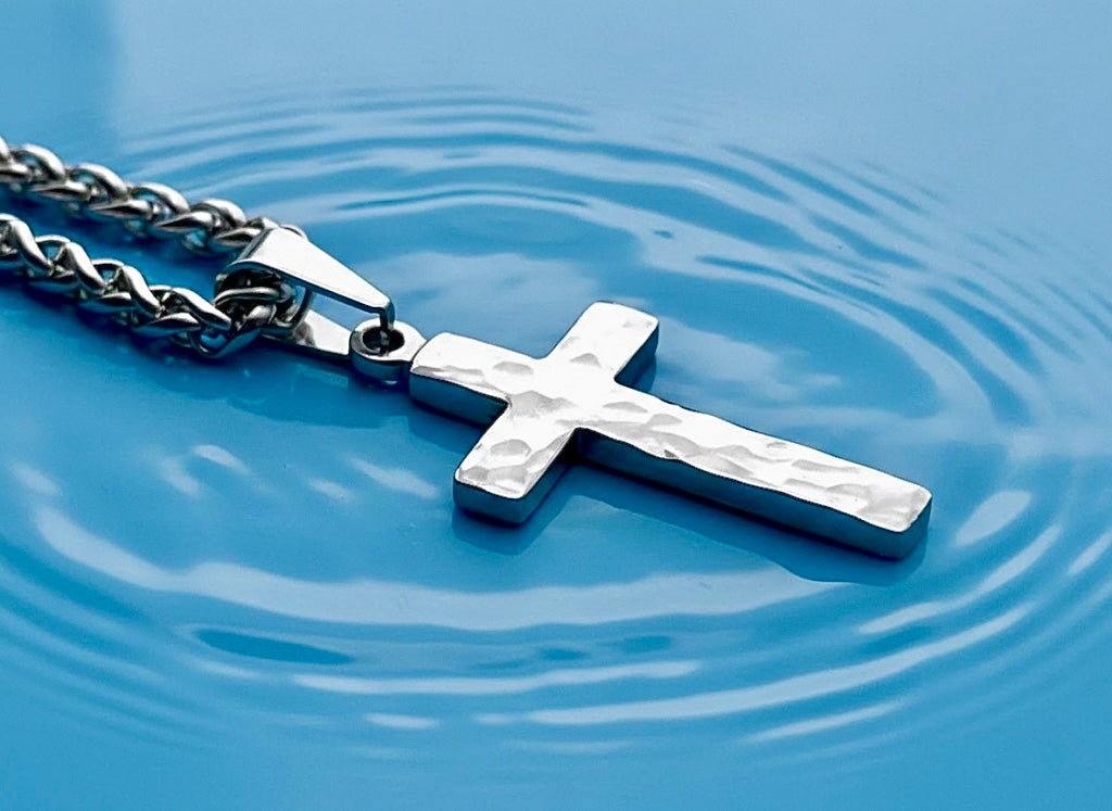 Get ready to stand out with our Medium handmade Custom Hammered Cross Pendant. Handcrafted in our workshop, each piece is polished to a breathtaking High Luster that catches the eye from every angle. With a long-lasting glossy shine, this exclusive and personal piece from Saint Michaels Jewelry is truly one-of-a-kind. Order now and be the envy of all!