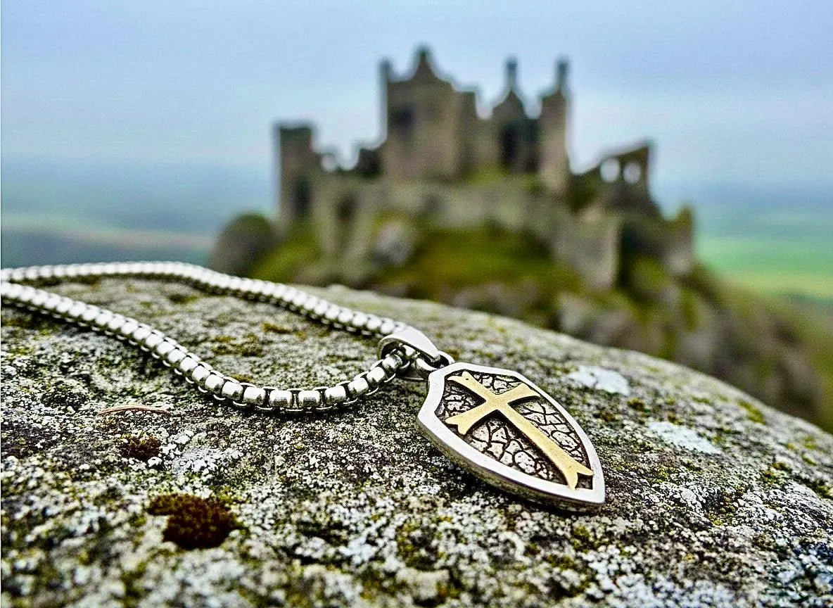 Solid Sterling Silver Cross Shield Jesus Crucifix Cross Shield Necklace Calvary Biker Waterproof Medallion Mens Christian Jewelry